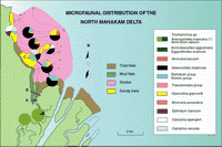 La variété des biofaciès rencontrés nous oblige à dessiner un modèle de répartition relativement complexe à la hauteur de la diversité des facteurs physico-chimiques influant sur la distribution des tests. Il constitue un outil important pour l’interprétation des séries néogènes sous-jacentes au delta