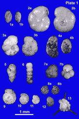 lointaine (Calcarina spengleri (Gmelin) 1791, Calcarina venusta (Brady) 1884, Elphidium