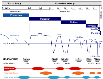 Figure 1: Main faunal successions in the Mediterranean Sea during the several glaciations after the Pliocene (modified, from & , 1993). The true number of glaciations during the Pleistocene remains to be defined, there are probably one or two more between the Mindel and Riss glaciations. |