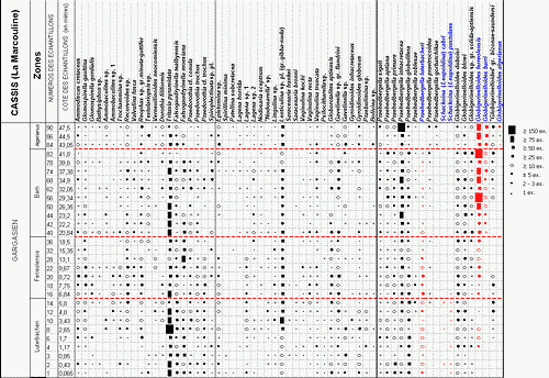Figure 3 : Répartition des Foraminifères dans la coupe de la carrière de La Marcouline (Cassis, SE France).