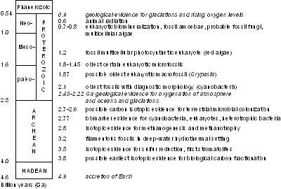 Figure 1: Geological time-scale with important geological and biological events in the Precambrian (modified from , in press).