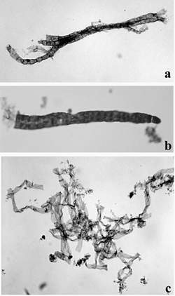 c - filamentous sheaths (10 µm wide).
