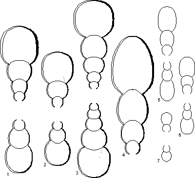 On peut définir deux groupes morphologiques : morphologie subserpenticone à section subcirculaire puis ovale