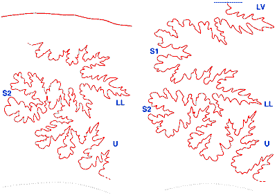 ). Des apophyses courtes sont interprétées comme des apophyses en cours de construction. Nous n'avons jamais observé d'apophyses transitoires longues.