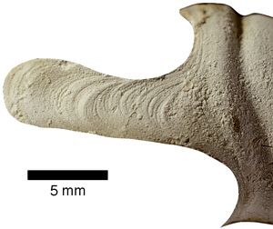 Il n'y a pas de formations paraboliques si ce n'est, chez un unique exemplaire, la présence de deux petites excroissances localisées juste avant une constriction et qui peuvent être interprétées comme des paraboles très discrètes