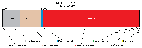 Au cours de l'année 2001, des travaux ont été effectués à environ 3 km au sud de Niort afin de créer, à partir de la N 201, la sortie Saint-Florent ZI. Ces travaux ont permis de remettre à jour la formation des marnes gris-bleu et ainsi de récolter une très abondante faune d'ammonites ferrugineuses, rarement pyritisées, soit 4342 individus dans l'échantillon ici analysé.