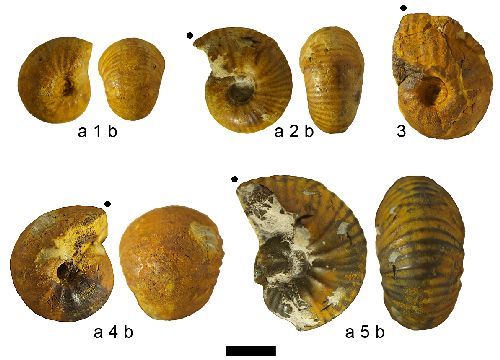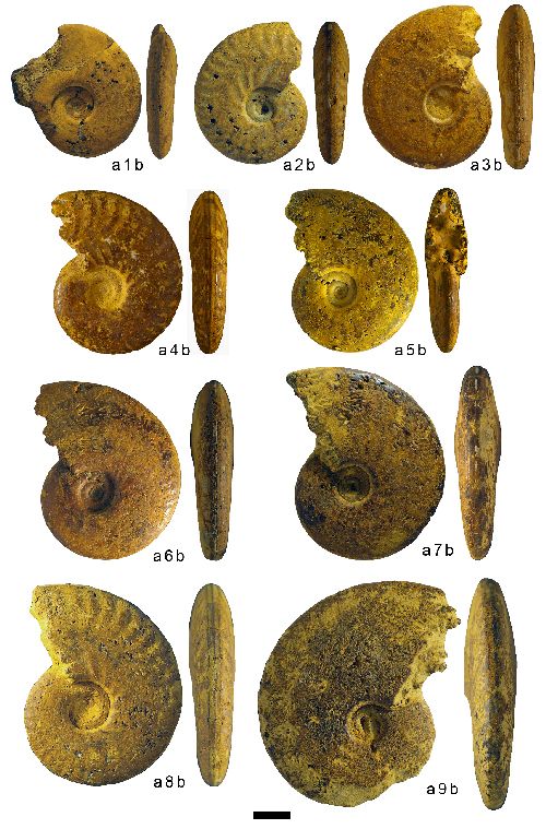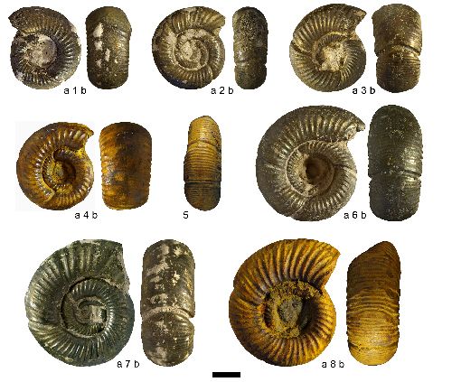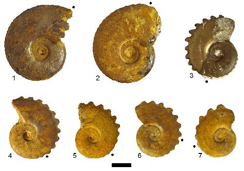 P., D., J. & J. (1997).- Apparition d'une morphologie scaphitomorphe par miniaturisation chez une ammonite oxfordienne : Scaphitodites scaphitoides , 1853.- Comptes Rendus de l'Académie des Sciences, Paris, (série II), fasc. a, t. 325, N° 4, p. 281-284.
