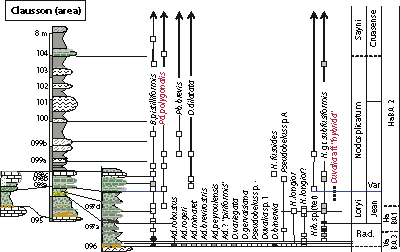 The lithologic succession of this section is comparable to the sequence at Clausson and Collet des Boules, from which it differs by the absence of a basal conglomerate. The section was figured by