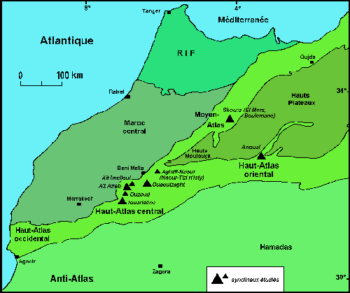 J., A. & M. (1981).- Les Couches rouges du Jurassique moyen du Haut Atlas central (Maroc) : corrélations lithostratigraphiques, éléments de datations et cadre tectono-sédimentaire.- Bulletin de la Société géologique de France, Paris, t. 23, n° 6, p. 627-639.