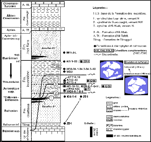figs. B1 à B12) et se rattachent donc de même au Bathonien - ? Callovien. Dans le synclinal des Iouaridène, P. hians a également été trouvée au-dessus de la Formation des Guettioua dans les niveaux de base de la Formation des Iouaridène (éch. IO 4 à 6).