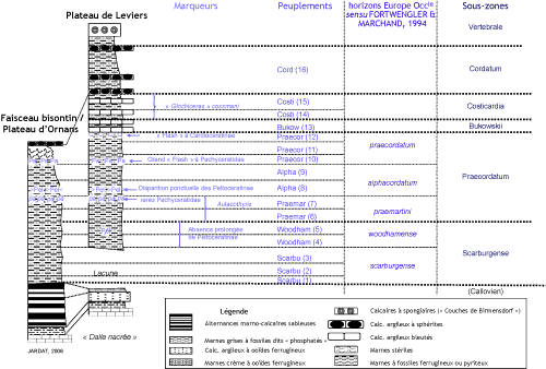 synthétique de l'Oxfordien inférieur du Jura valable pour la zone