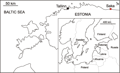 Figure 1: Location of the Saka outcrop in northeastern Estonia (red square).
