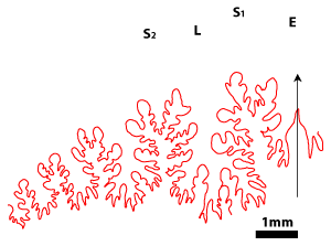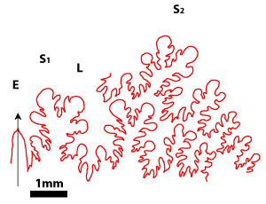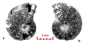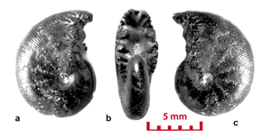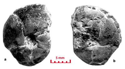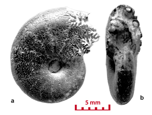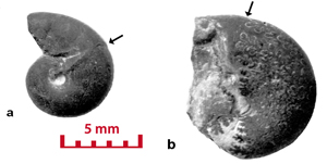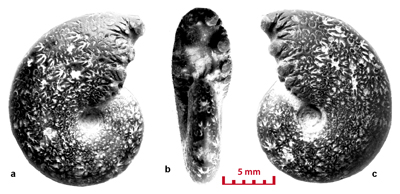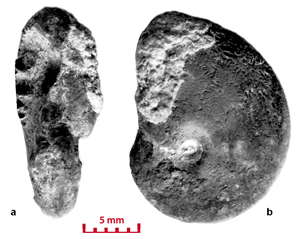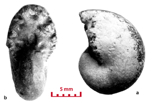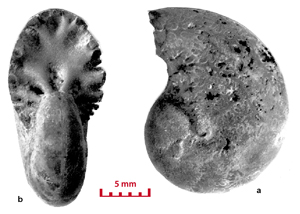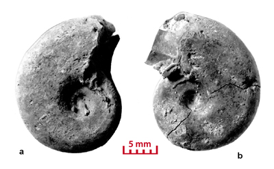 These ammonites are small (diameter 5-28 mm) and seem to belong to the juvenile stage. For a long time the Vocontian basin seems to have been the egg-laying area of these Cephalopods. In the Valanginian marls there are specimens whose diameter is less than 5 mm. They have not been determined in this study. However their presence is significant. The pyritic specimens and the iron oxide specimens (for example the limonitic specimens) are not necessarily small in size. In the marly facies there are very large pyritic specimens, which are among the largest known (, 2000, p. 173). In Senez-Lioux the smallest specimens are not the nuclei of the largest ones. They are not small adults because we are unable to see the contraction of the last septa showing the slowing down of their growth. The beginning of the body chamber, which is present in many of the specimens, proves that these specimens were merely not nuclei and definitely they have not attained sexual maturity.
