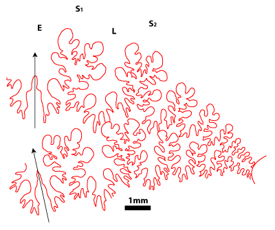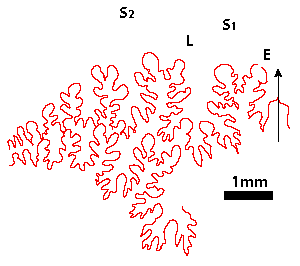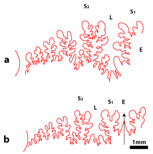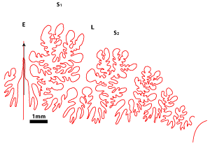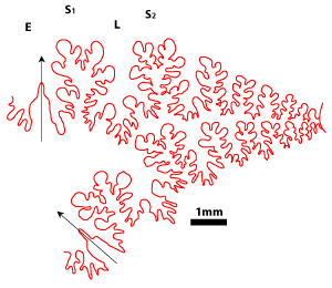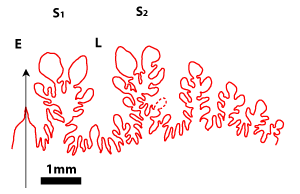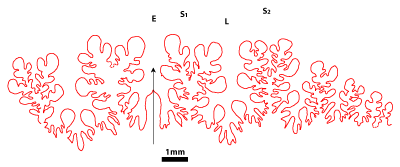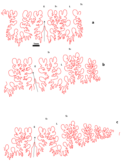 1977, p. 10-12) : tracé des lignes cloisonnaires, mensurations ayant permis les représentations graphiques