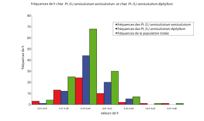 Figure 84 : Fréquences de h chez Pt. (S.) semisulcatum semisulcatum et Pt. (S.) semisulcatum diphyllum.