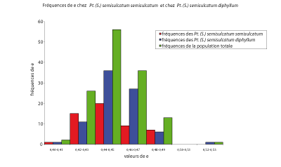 Figure 85 : Fréquences de e chez Pt. (S.) semisulcatum semisulcatum et Pt. (S.) semisulcatum diphyllum.