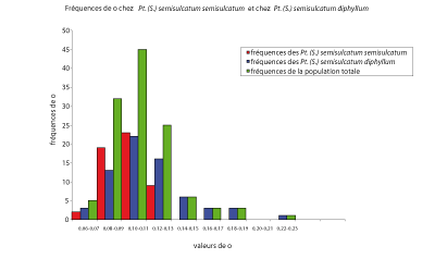Figure 86 : Fréquences de o chez Pt. (S.) semisulcatum semisulcatum et Pt. (S.) semisulcatum diphyllum.