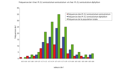 Figure 87 : Fréquences de l chez Pt. (S.) semisulcatum semisulcatum et Pt. (S.) semisulcatum diphyllum.