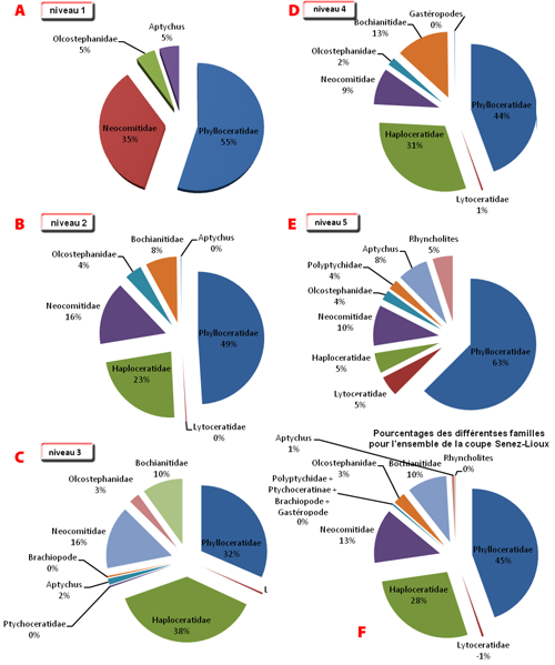 pour la représentation graphique des familles en pourcentages et par niveaux). Quelques spécimens proviennent du Valanginien de la Drôme (collections et ).