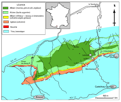 In the Sérou region, the Northern Mesozoic cover of the Arize massif is characterized by "Urgonian" limestones, which precede