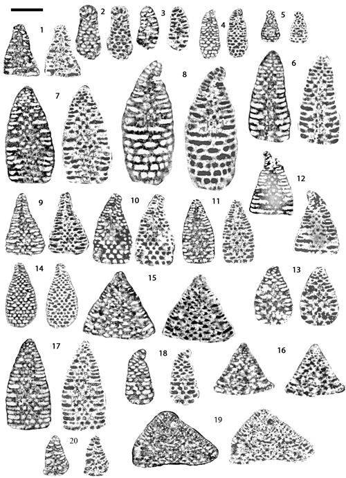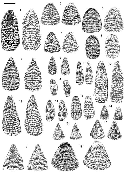 We did not plot our findings on the tentative phylogenetic lineage proposed by et al. (2002) because it deals with 7 species only; in addition one of them been restricted to the sole Late Hauterivian. However, the plot of s chart ichnusae s shows that these are in good accordance with the ranges given therein except for the two Valserina, V. primitiva (the first occurrence of which was brought down) and V. turbinata (the total range of which was shifted down).