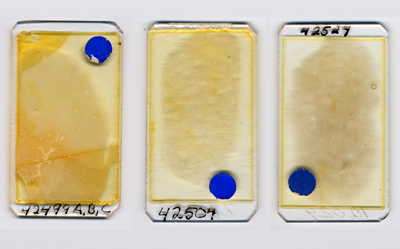 With respect to these taxa, and (1965) list four thin sections with an USNM registration number (No. 42499, 42500, 42504, and 42524, ink writing, which correspond respectively to locality numbers 4819, 4819(2), 7747, and 10029, glass engraving). However the thin section 42500 is probably lost as there is no record for it in the Smithsonian Institution's inventory. The quality of the remaining thin sections varies significantly: the color of the Canada balsam has locally turned from light yellow to dark brown; the rock slices themselves have different thicknesses; the sections of the fossil specimens are random; etc.