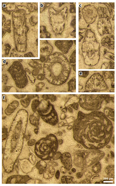 , figs. b-c) of these agglutinated foraminifers, which are rather common in Upper Cretaceous shallow-water carbonate facies.