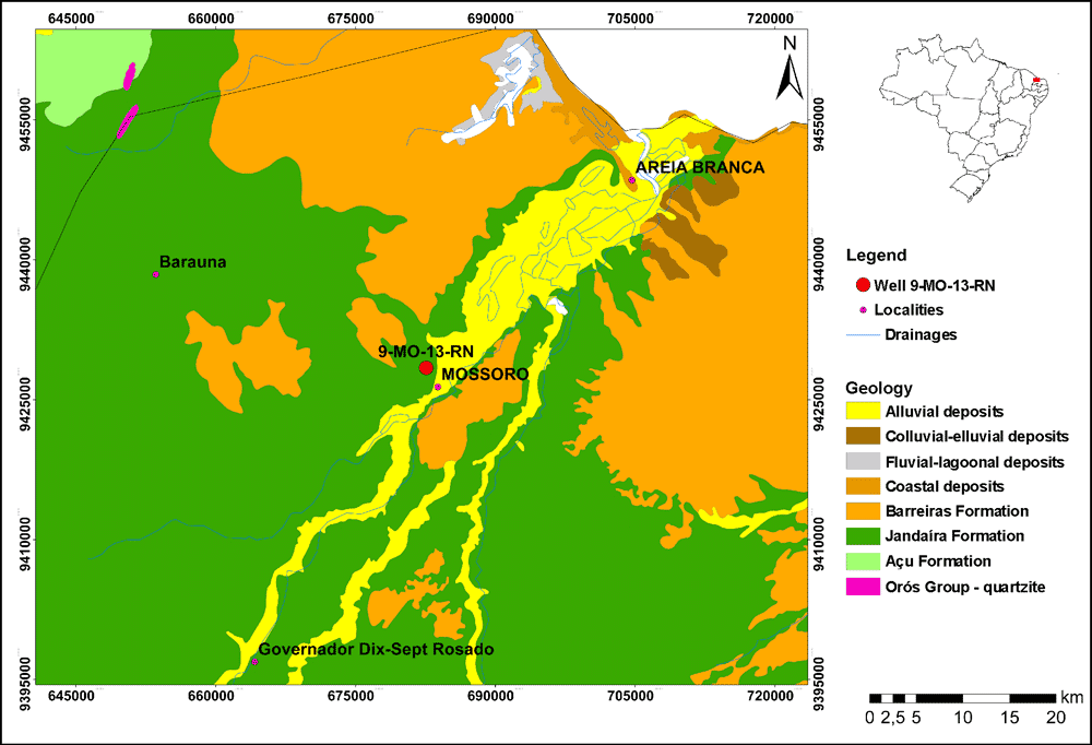 Figure 1: Potiguar Basin, showing the position of the studied well, 9-MO-13-RN, located in Mossoró city, Rio Grande do Norte State, Brazil (from Geological Survey of Brazil).