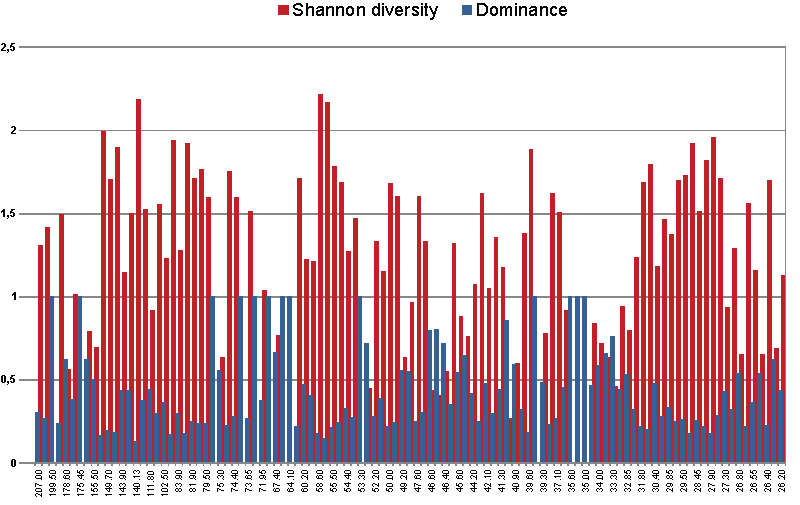 Shannon diversity and dominance indexes in the studied interval