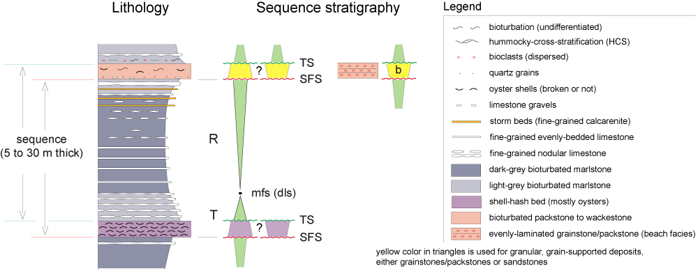 . b, for beach facies.