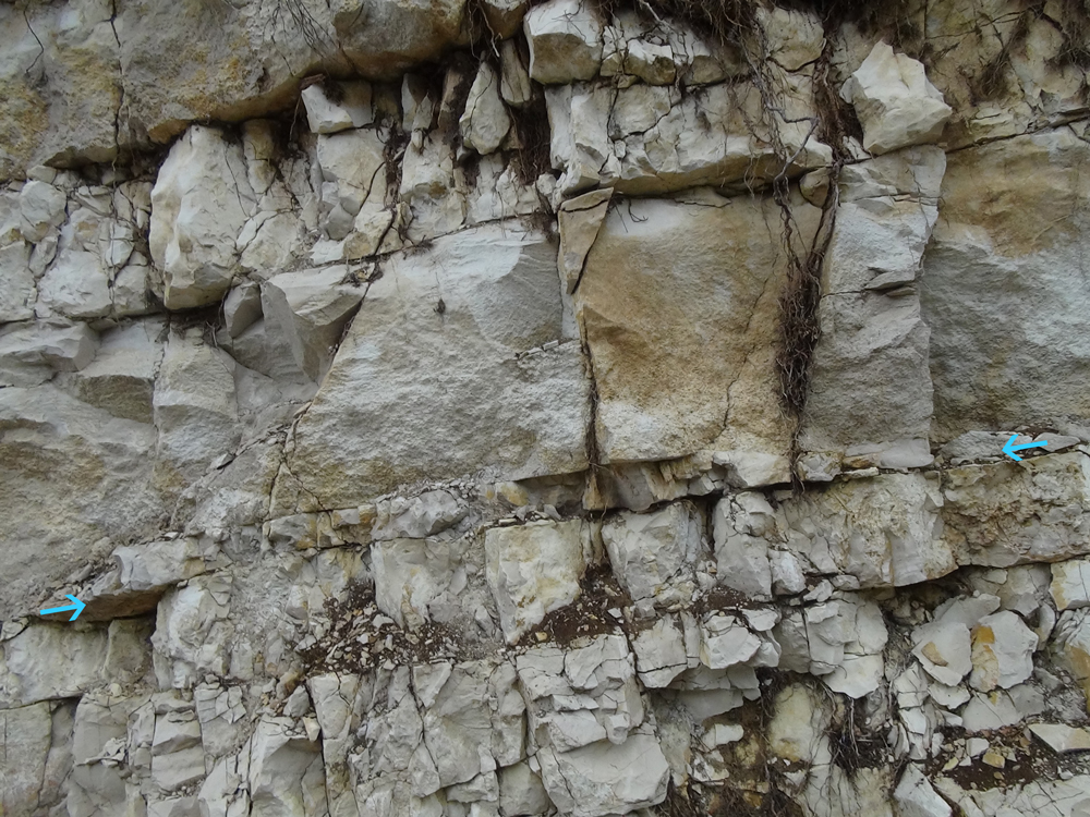 Figure 8: The Tithonian/Berriasian boundary (arrowed) of Le Chouet (Granier et al., 2023b) at Les Près (Hautes-Alpes, France), 08/05/2018.
