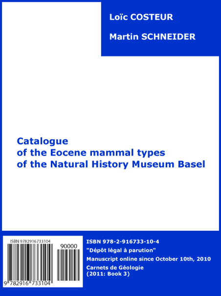 Livre 3 [2011] : Catalogue des types de mammifères éocènes du Musée dhistoire naturelle de Bâle, par Loïc COSTEUR & Martin SCHNEIDER.-