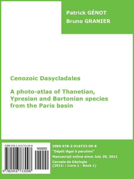 Publication spéciale 1 [2011] / Livre 1 [2011] : Dasycladales cénozoïques. Un atlas photographique des espèces thanétiennes, yprésiennes et bartoniennes du bassin de Paris, par Patrick GÉNOT & Bruno GRANIER.-