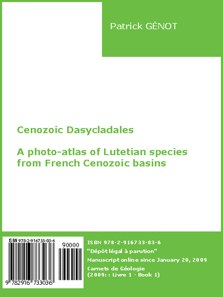Publication spéciale 1 [2009] / Livre 1 [2009] : Dasycladales cénozoïques. Un atlas photographique des espèces lutétiennes des bassins sédimentaires cénozoïques français, par Patrick GÉNOT.-