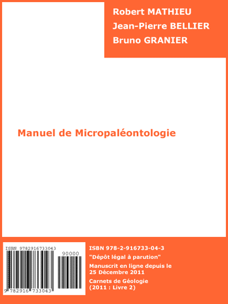 Livre 2 [2011] : Manuel de Micropaléontologie, par Robert MATHIEU, Jean-Pierre BELLIER & Bruno GRANIER.-