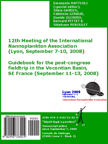 Livre 1 [2008] : Guidebook for the post-congress fieldtrip in the Vocontian Basin, SE France (September 11-13, 2008), par Emanuela MATTIOLI (special editor), Silvia GARDIN, Fabienne GIRAUD, Davide OLIVERO, Bernard PITTET & Stéphane REBOULET.-