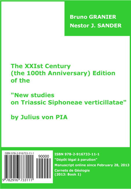 1 [2013] : L'Édition du XXIème Siècle (100ème Anniversaire) des "Nouvelles études sur les Siphoneae verticillatae du Trias" de Julius von PIA, par Bruno GRANIER & Nestor J. SANDER.-