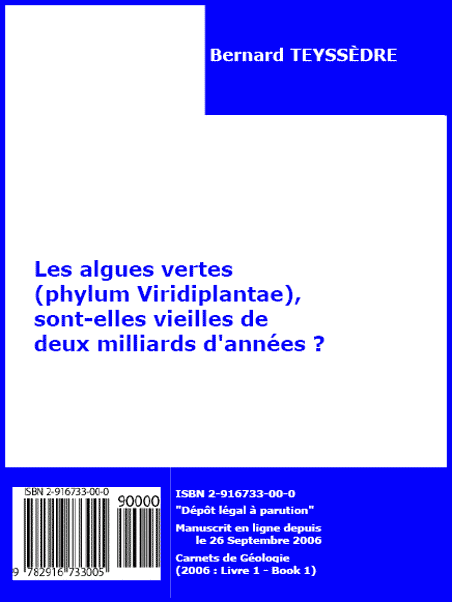 Livre 1 [2006] : Les algues vertes (phylum Viridiplantae), sont-elles vieilles de deux milliards d'années ?, par Bernard TEYSSÈDRE [disponible uniquement en version française].-